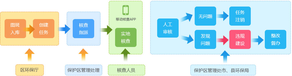 建立以自然保护区疑似图斑为中心的工作流程,实现围绕图斑点位进行任务的创建、下发,实地核查等功能。