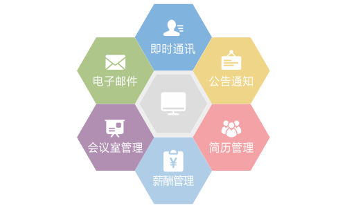 日常工作通过电子化、信息化手段,实现业务流程审批、即时通讯、公告通知、电子邮件、会议室管理、简历管理、薪酬管理等日常事务的功能,提升工作效率,降低运营成本,实现资源共享以及信息的快速传递。