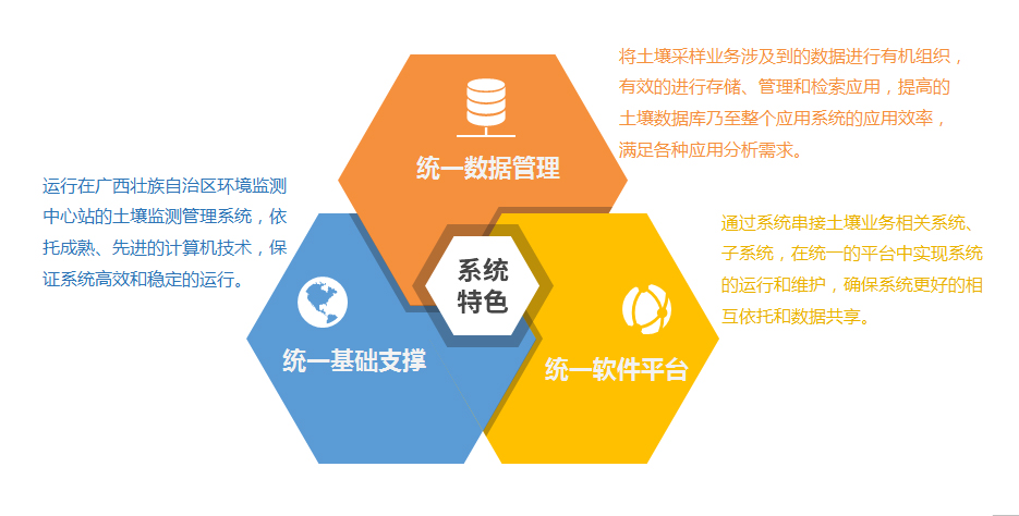 广西土壤监测管理系统项目建设包括综合业务系统、数据查询系统、采样app。通过建立广西土壤监测管理系统, 实现土壤监测任务的下发、采样跟踪、土壤采样信息入库、样品管理、质量控制管理、污染数据收集、污染分析评价, 统一管理土壤环境调查数据,全面了解和掌握广西土壤污染状况,从而实现土壤相关数据的彻底摸清和科学管理。
